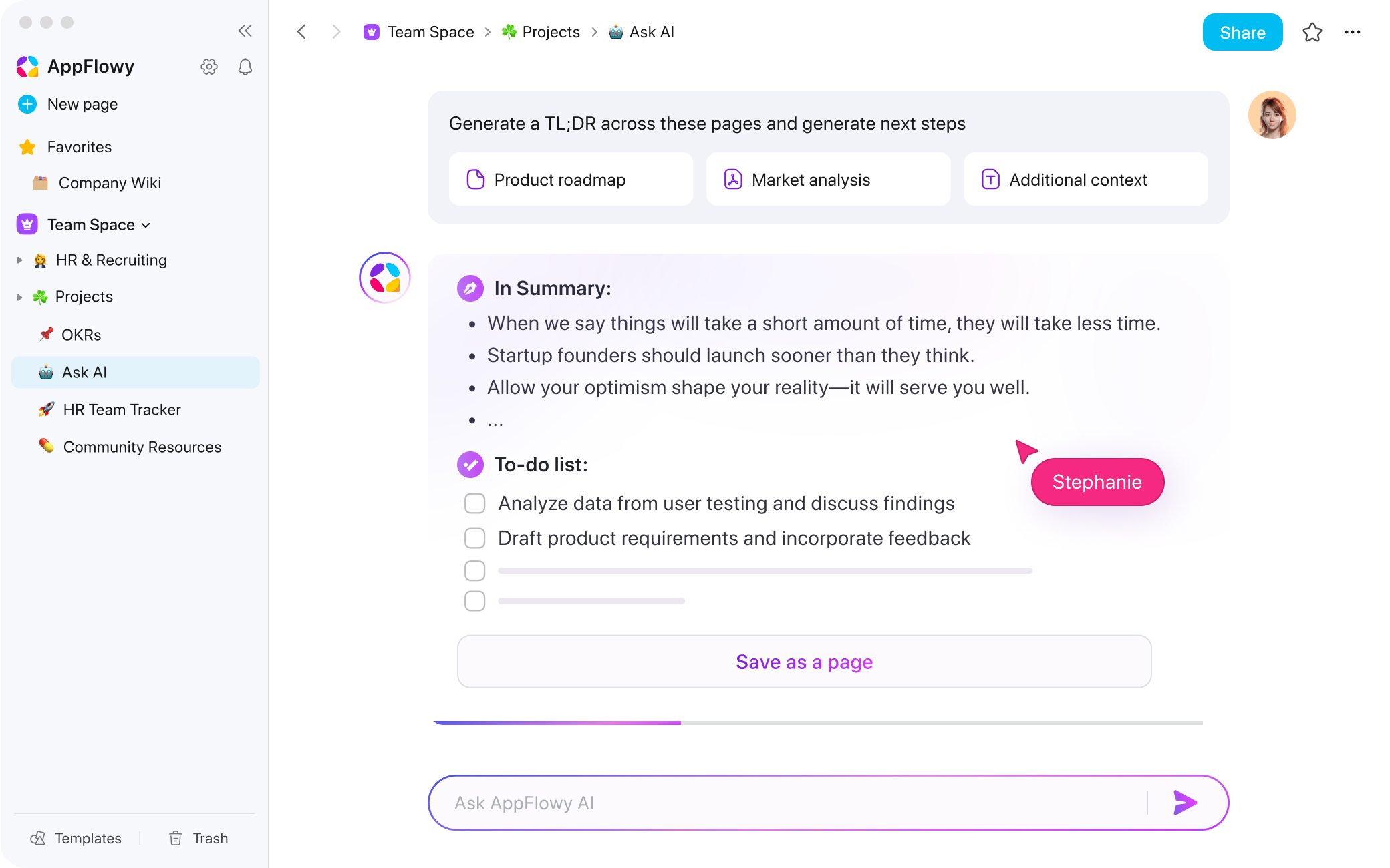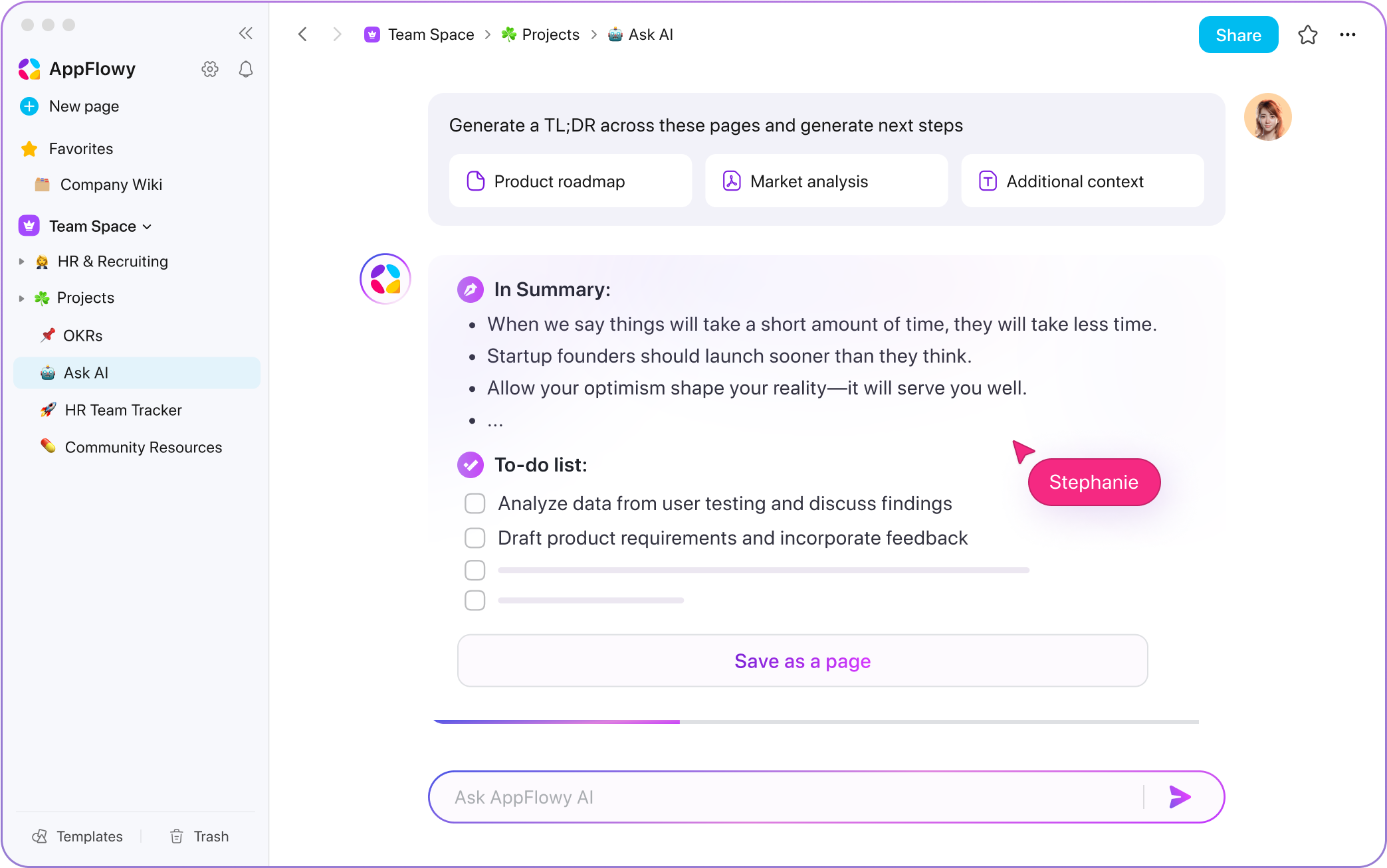 AppFlowy AI is your go-to teammate who adapts to your changing needs and priorities.