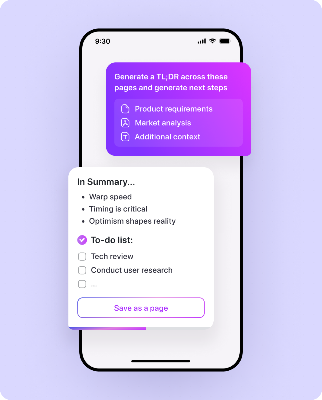 Get intelligent insight, extract actionable items, and generate takeaways across pages.