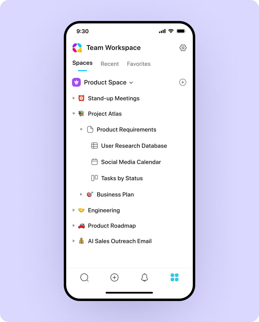 Easily navigate your entire workspace.