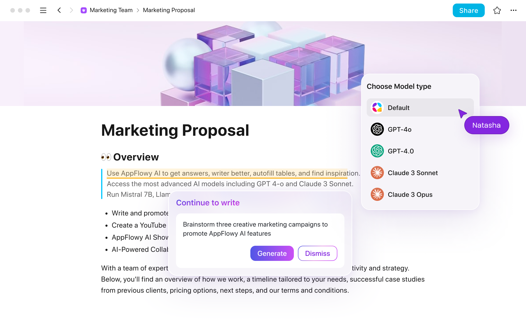 Get rid of blank pages, improve writing, and brainstorm ideas—all without switching tools.